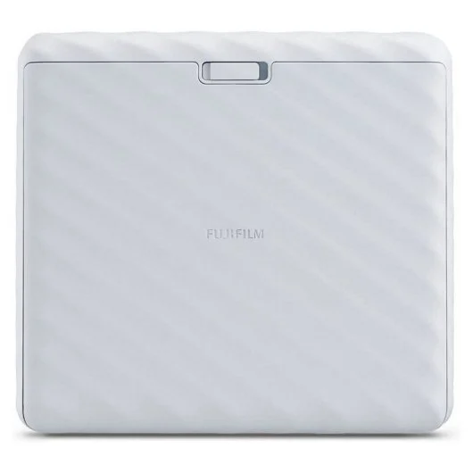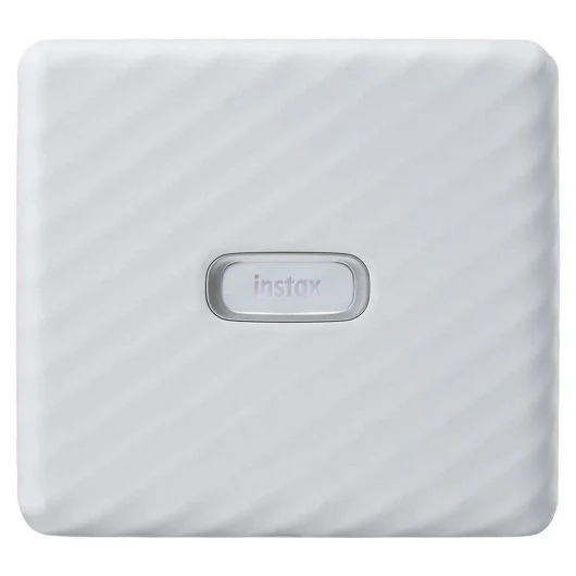Design elegante em branco suave, ideal para quem gosta de impressões amplas e qualidade instax premium.